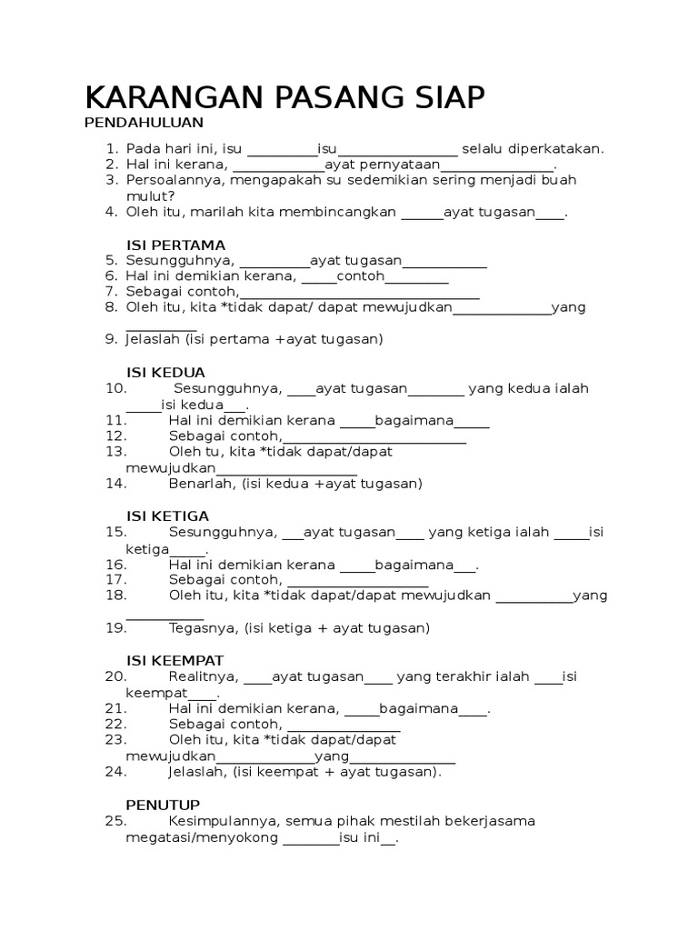 . Contoh Karangan Ceramah PT3 format Bahasa Melayu disampaikan. Contoh karangan Isi-isi karangan teknik menulis dan kertas percubaan bagi rujukan kepada pelajar UPSR PT3 SPM dan STPM. Anda perlu menulis lima hingga enam isi dalam setiap karangan tidak termasuk satu perenggan pendahuluan dan satu perenggan lain bagi penutup.